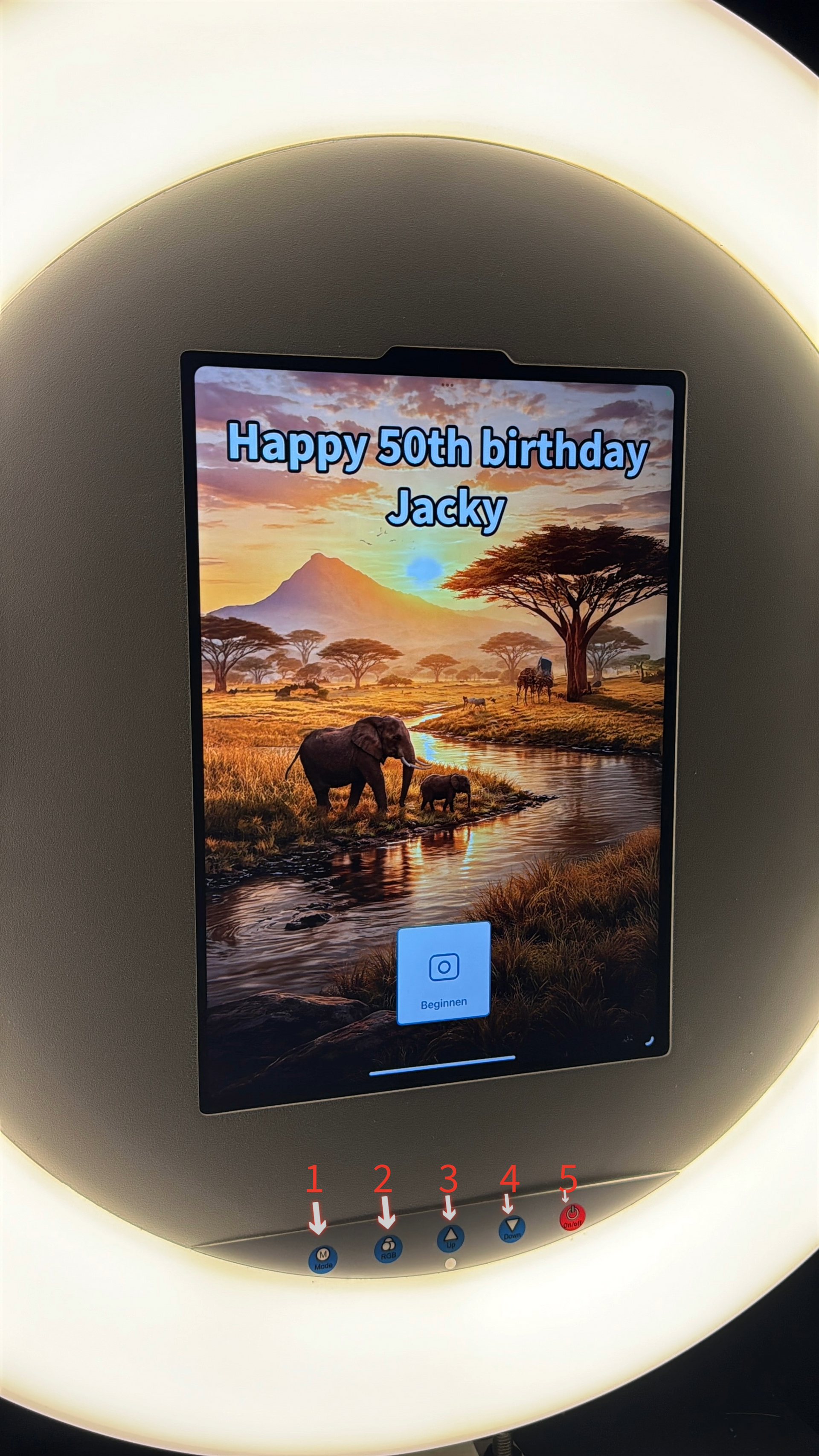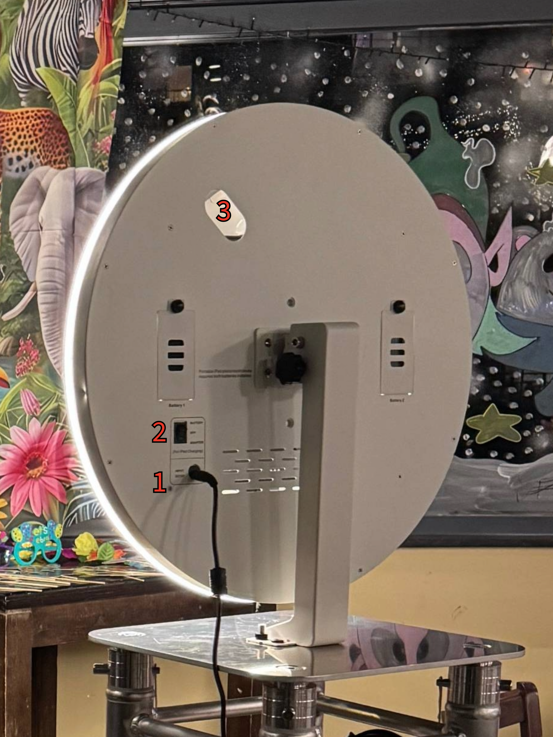 - Controleer aan de achterkant op de photobooth of het schakelaartje naar beneden staat (richting adapter).